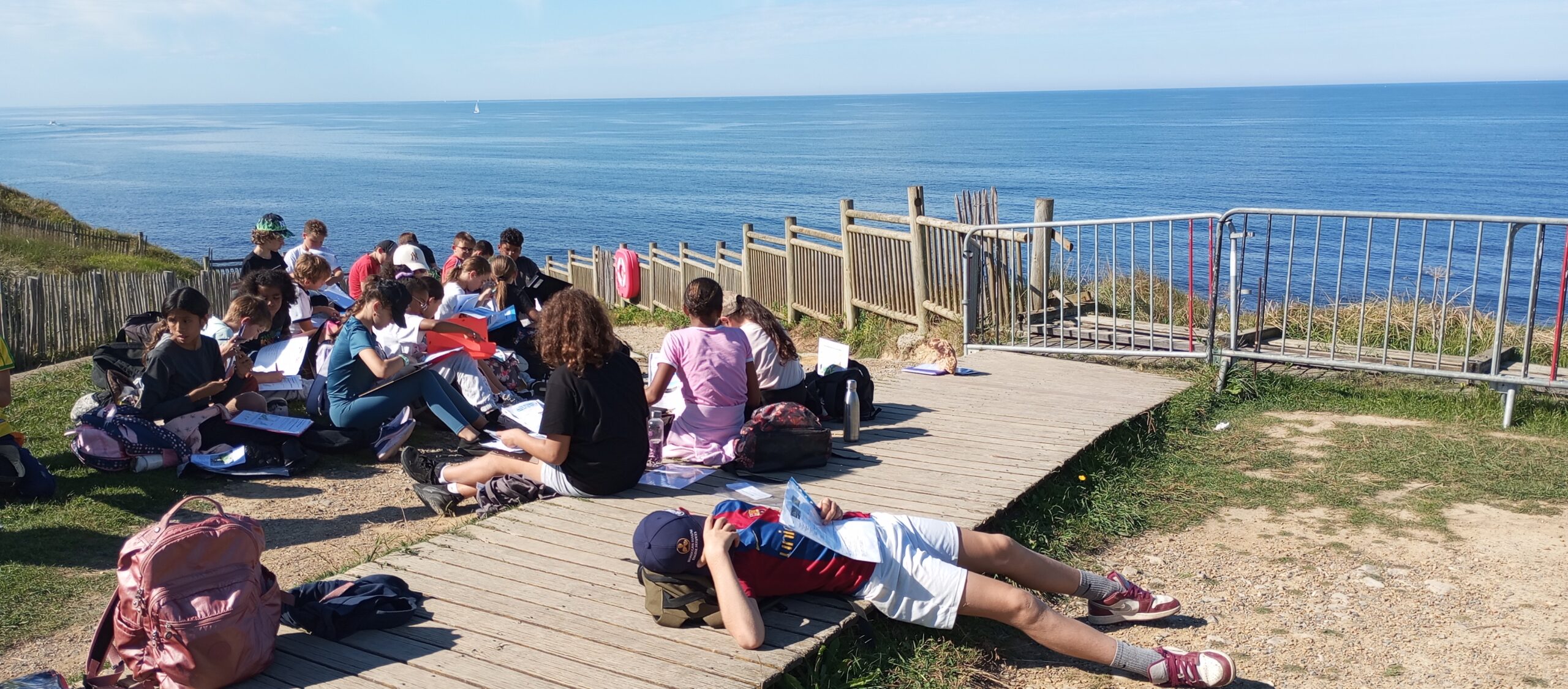 En début d’après-midi une réflexion est menée pour sensibiliser aux risques en milieu littoral au niveau de la Pointe Sainte Barbe.